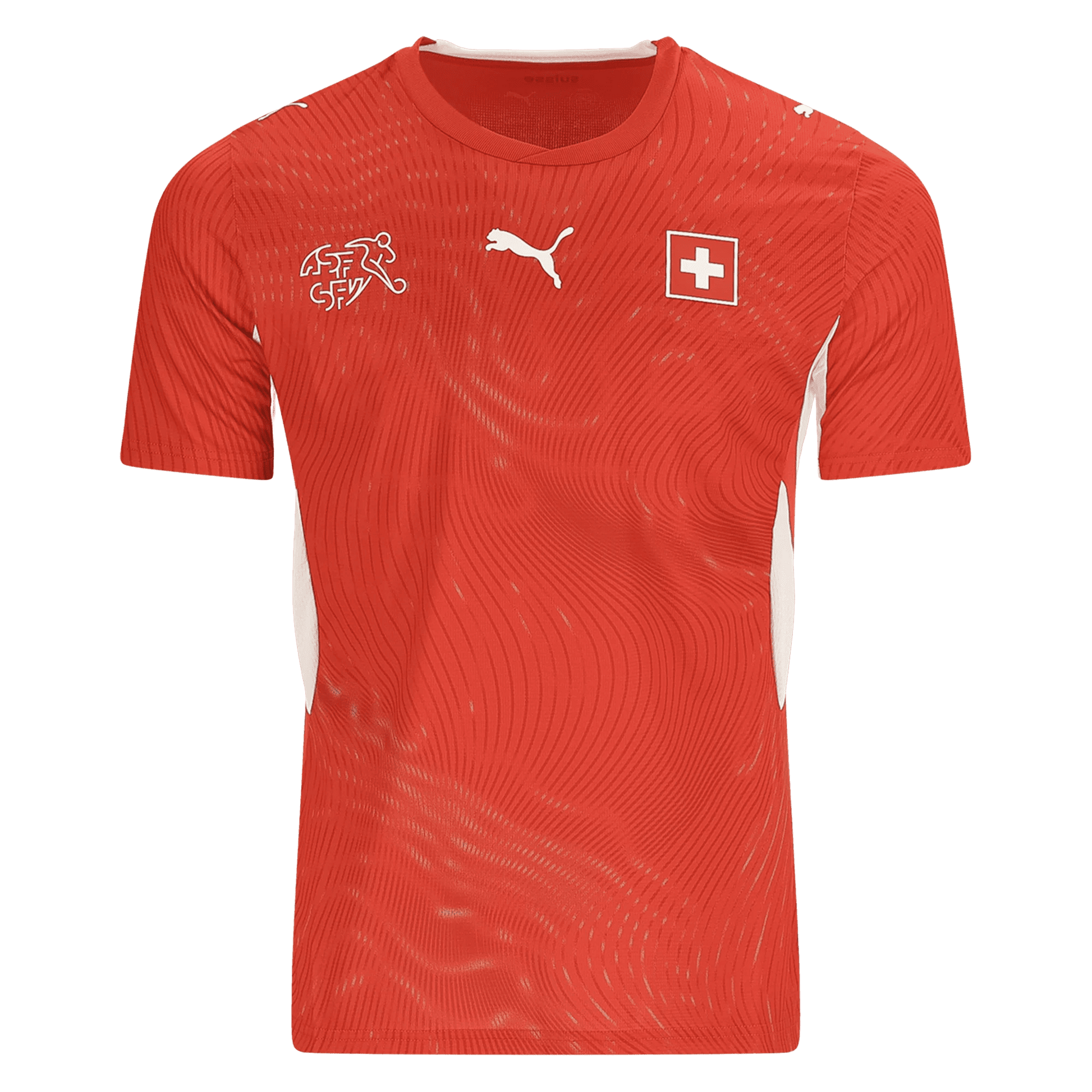 The 2026 Switzerland Home Jersey features the classic red base paired with crisp white detailing along the collar and sleeves. A subtle cross-inspired geometric texture is woven into the fabric, reflecting the national flag in a refined, contemporary way. Built with lightweight, breathable materials, the jersey ensures comfort whether worn during matches or in everyday fan style.